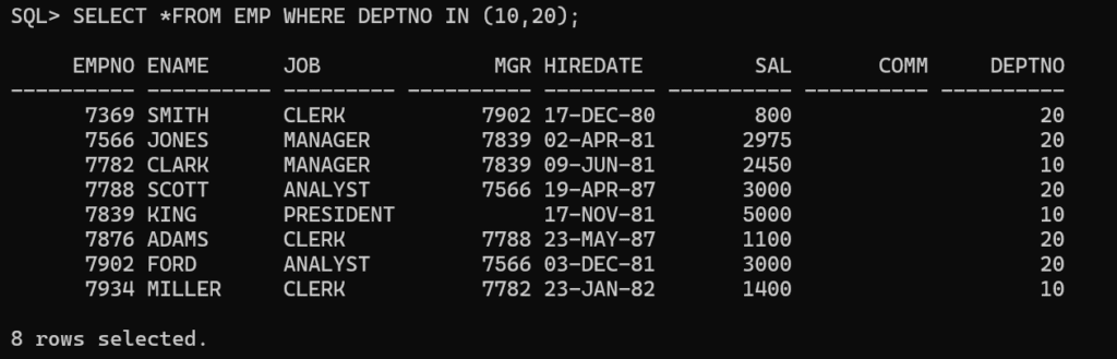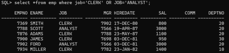 The LIKE operator in Oracle SQL is used to search for a specified pattern in a column. It’s commonly used with character data types (CHAR, VARCHAR2, etc.) in WHERE clause.